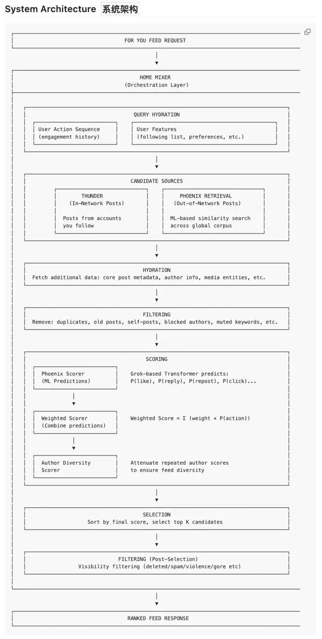 现在,一个基于Grok架构的Transformer模型,通过学习你的历史互动行为(你点赞过什么、回复过什么、转发过什么),来决定给你推荐什么内容。