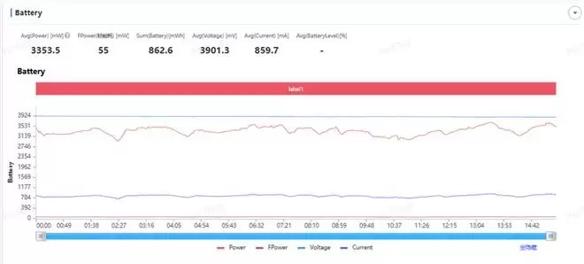 更令人惊讶的是手机的能耗表现,游戏的平均功耗为2.84W,每帧能耗低到了20mW以内。
