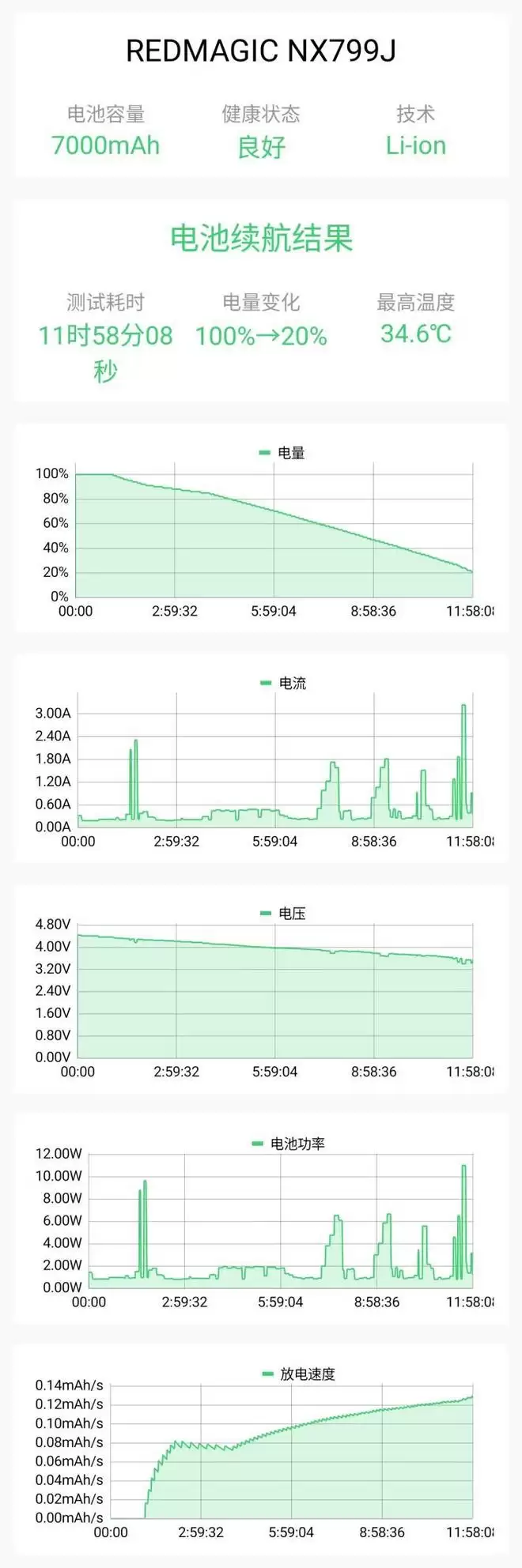 红魔11 Air 坚持了11小时58分,接近12小时的续航能力将一众Air机型远远甩开,一整天使用都无压力,作为主力机型都绰绰有余。