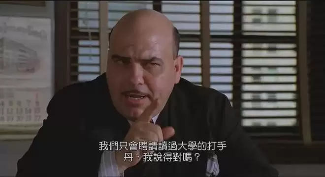 在说这句话的三分之二时间里,科恩兄弟使用中景特写镜头瞄准了讲话的强尼·卡斯帕,这一角色由乔·鲍里托扮演,乔·鲍里托是电影界最伟大的、最废话连篇的恶棍演员之一,也是整个20世纪90年代科恩作品里的代表人物。虽然他留着铅笔胡子,透露出阵阵油腻感,但这也恰恰是他这个笑柄的点睛之笔。