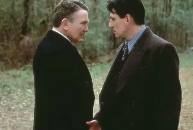 伯尼沉缓地步入森林,此时的他还不知道是否能通过连哄带骗逃过命运的一劫。汤姆愤怒地冲进拥挤的女士化妆间,与维娜对峙(那位受到惊吓的服务员是男扮女装的阿尔伯特·芬尼扮演的)。电影的配乐,同样很帅,气势雄雄。卡特·伯韦尔制作的配乐借鉴了爱尔兰音乐,或是爱尔兰风格的音乐,由亚伦·科普兰编曲,唤起了汤姆和利奥对于故土的情感。影片中的静默感也很深沉。当汤姆即将走进大楼面对宿命时,他身后经过电车的声音大得像是火车头的轰隆声。