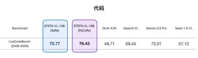 阶跃星辰公开的多模态基准测试结果显示,Step3-VL-10B是10B参数类别中最强大的开源模型。