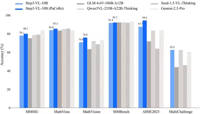 从技术层面看,Step3-VL-10B的性能突破得益于三个关键设计,分别是高质量多模态语料库上进行统一预训练、缩放多模态强化学习、并行协调推理机制。