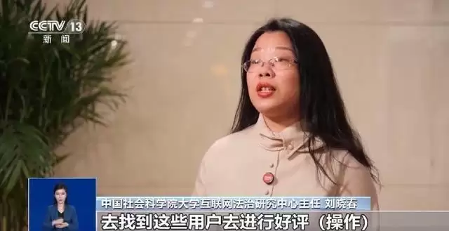 中国社会科学院大学互联网法治研究中心主任 刘晓春:商家会委托给相应的专门的组织,找到这些用户进行好评操作,然后去付费。这些被委托方帮助商家去刷单,虚假好评、虚构好评的这些组织或者个人,他们都要承担反不正当竞争法上的法律责任。如果情节比较严重的话,对这类行为是处以100万元以下的罚款,如果情节非常严重的话,罚款还会高于100万元。
