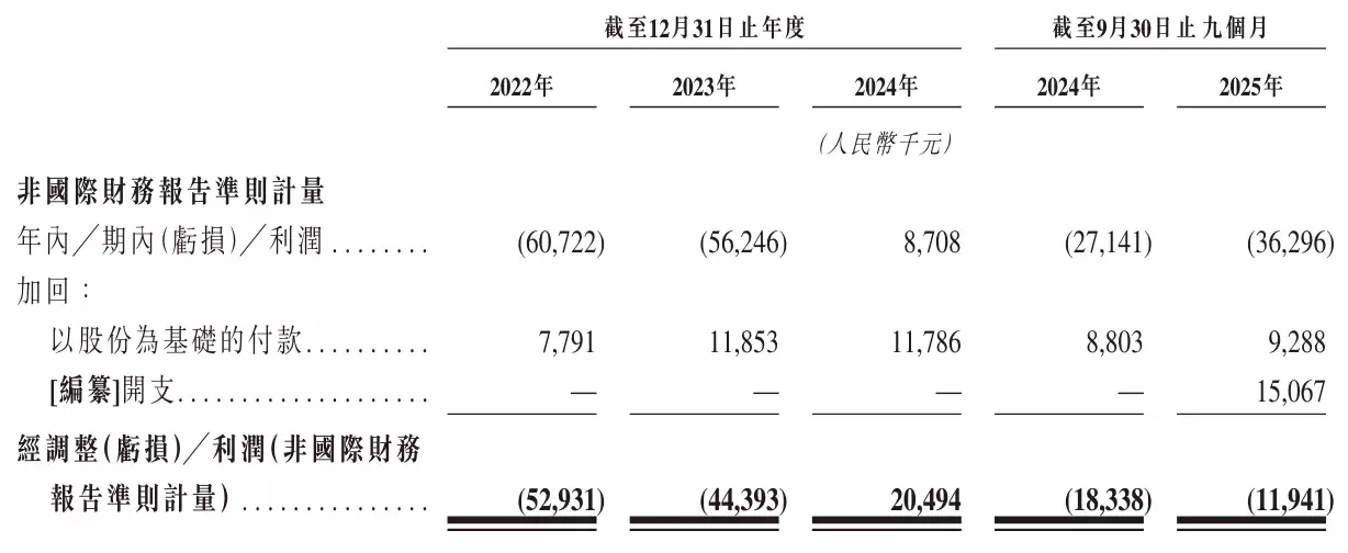 2024年、2024年及2024年,极视角经调整净利润分别为-5293万元、-4439万元和2049万元;2025年前九个月经调整净亏损为1194万元。