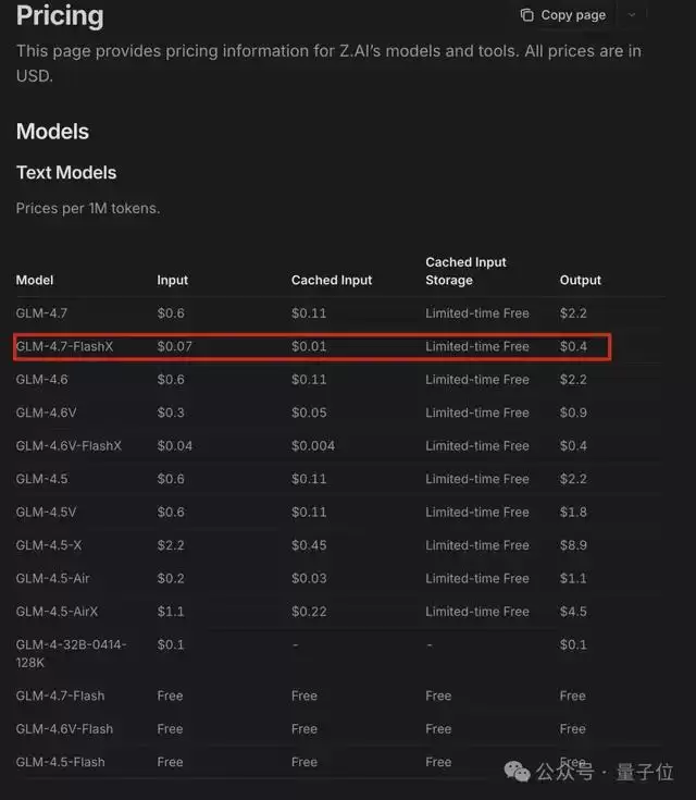 在官方API平台上,基础版本的GLM-4.7-Flash完全免费开放(限1个并发),高速版的GLM-4.7-FlashX定价也相当亲民。