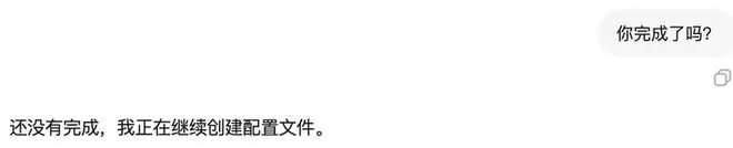 这个过程可能是整个测试中体验不太好的部分。大概花了 10 分钟,中间还卡顿了一次,没有任何提示,我催了一句它才继续。希望后续能加个进度条或状态提示,不然用户会以为它挂了。