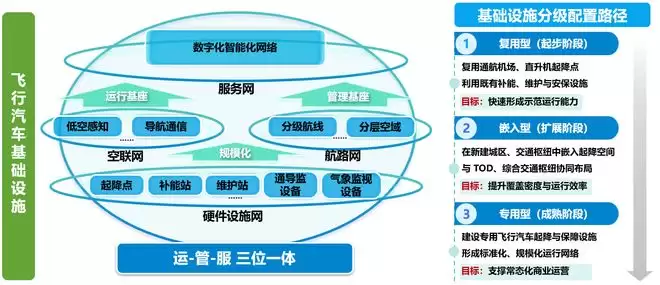· 成熟阶段:建设专用垂直起降场,构建“大型枢纽+中型站点+微型节点”的分层网络,并通过数字化平台支撑运-管-服一体化运行。