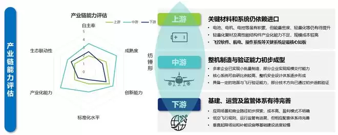 中游凭借整机制造与集成能力率先形成工程化基础,而上游关键系统和下游制度配套能力不足,构成制约产业发展的主要瓶颈,整体呈现“中游强、上下游弱”的纺锤形特征。