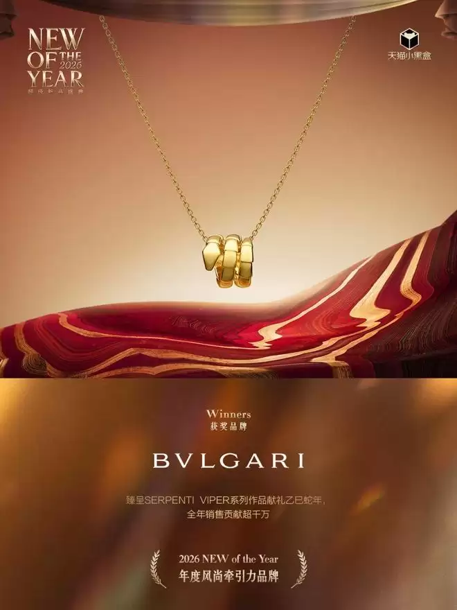 宝格丽Serpenti Viper系列新品就是典型。从策略来看,它并没有遵循传统陈列与强曝光的奢品上新套路,而是把新品先放进一个更容易被讨论和理解的语境。品牌在CNY节点,对经典灵蛇系列进行结构性调整同时在天猫线上独家首发:强化黄金材质的节日情绪,同时引入迷你尺寸,将其佩戴场景融入更为日常的语境中。