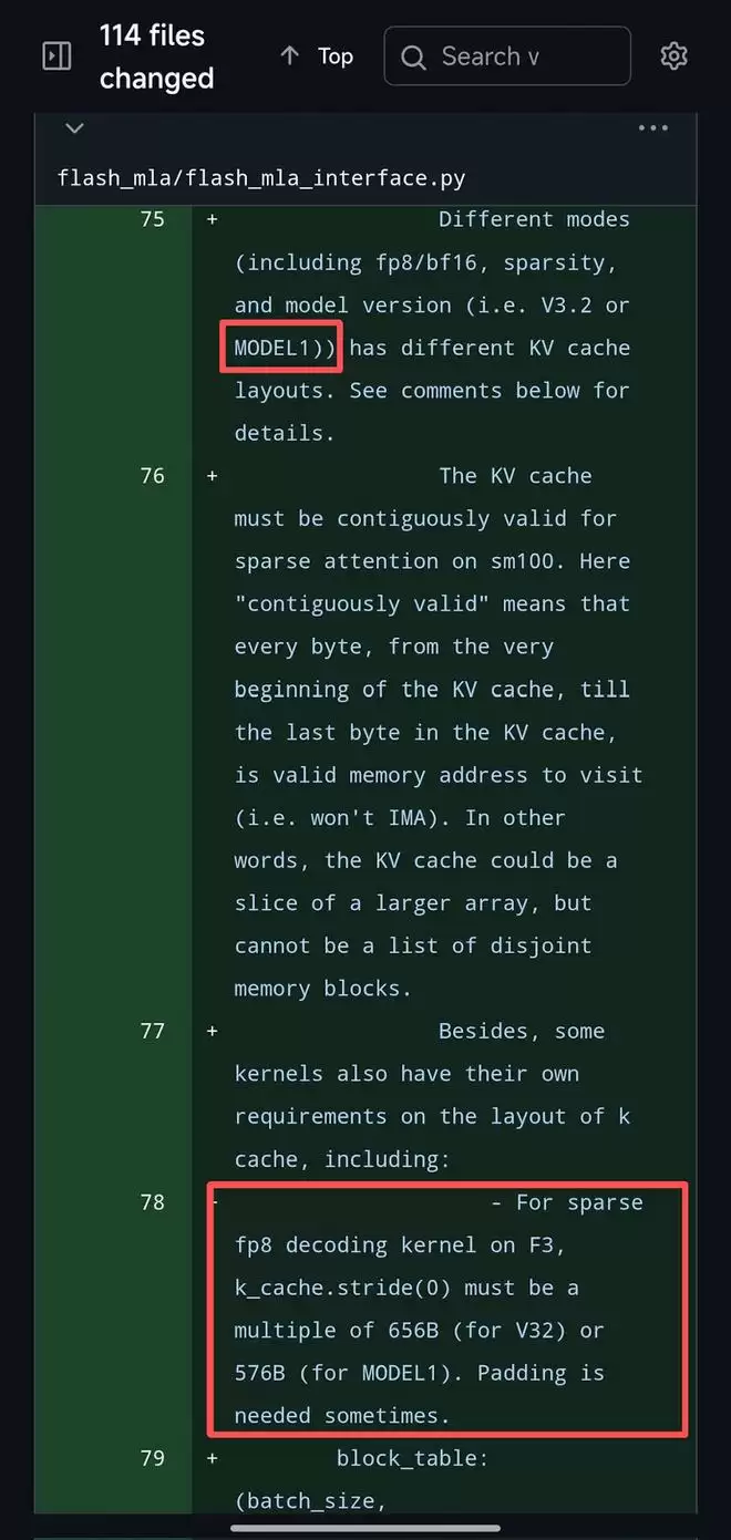更值得注意的是,在代码中,有一条特别注释写道:对于F3架构(即SM90平台)下的MODEL1模型,其KV缓存的内存stride必须是576B的整数倍。