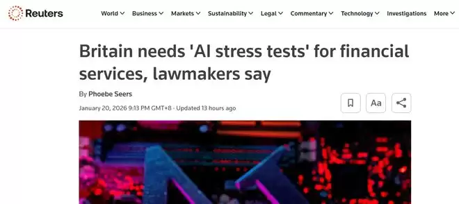 【环球网科技综合报道】1月21日消息,据外媒报道,英国议会财政委员会近日发布报告,警示该国金融监管体系在应对人工智能风险方面存在显著滞后。报告指出,若持续采取观望态度,可能对公众利益及整体经济造成严重损害,并呼吁监管机构尽快启动针对AI的专项压力测试,完善相关监管机制。