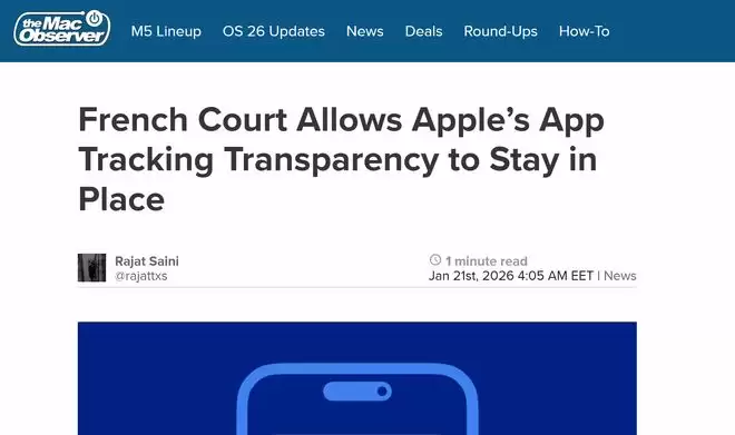 【环球网科技综合报道】1月21日消息,据The Mac Observer报道,巴黎司法法院近日作出裁决,驳回了法国广告行业协会要求暂停苹果“应用跟踪透明度”(ATT)功能的诉讼请求。这意味着这项旨在强化用户隐私保护的功能将继续在法国合法实施,也标志着苹果在与用户数据控制权相关的法律纠纷中取得了一场关键胜利。