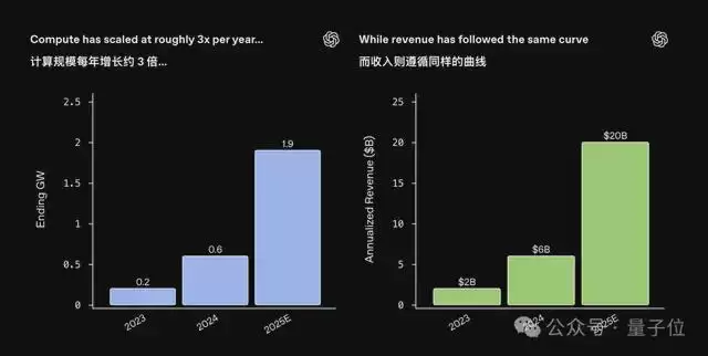 过去三年里,OpenAI的算力逐年增长,从最初的200兆瓦增长到1.9吉瓦,收入也相应地从20亿美元增长到超过200亿美元。