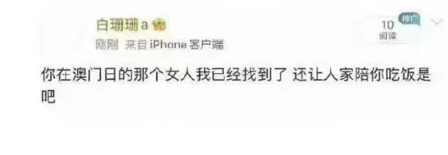 一会儿说“你在澳门日的那个女人我已经找到了,还让人家陪你吃饭是吧”。