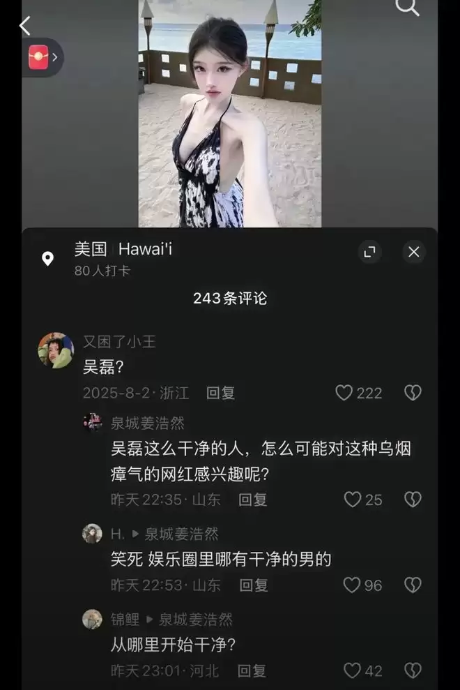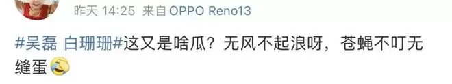 甚至不少八竿子打不着的边角料,也被当成了吴磊“品行不端”的佐证,白珊珊的某条抖音底下,有个路人评论提了一嘴吴磊,能被解读成“两人早有牵扯”。