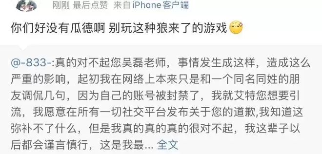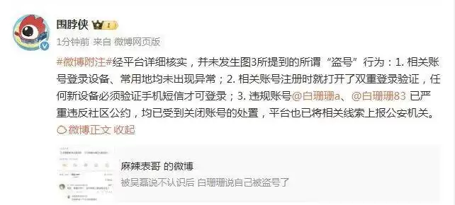 压力给到白珊珊,眼看事情闹大了,也赶紧删除了艾特吴磊的微博,还极其拙劣地启动了“我的账号不对劲”技能。