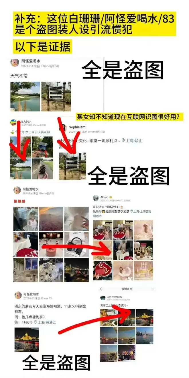 白珊珊那边可信度也极低,账号为新注册,长期盗用网图装名媛。