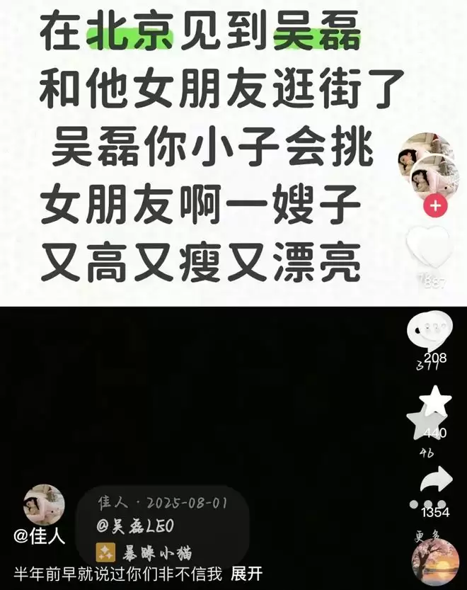 网友随口说自己在北京偶遇吴磊和高瘦漂亮的女生逛街,“嫂子”的帽子就这么扣了上去。