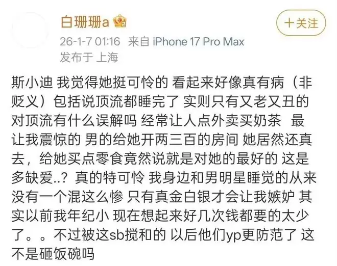 现在最让人担心的是,这种“网红嫂子站出来锤明星”的戏码会不会变成常态?毕竟像白珊珊这样,开几个账号、打几段字就能叫爆料,污名化的成本实在太低了。