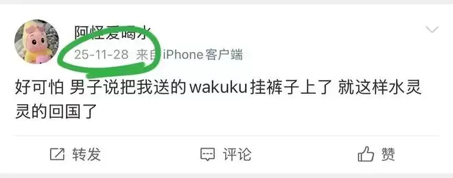 她说对方把她送的wakuku挂件挂裤子上回国了?吴磊前一天从英国回来,裤子上好像真有个wakuku挂件!