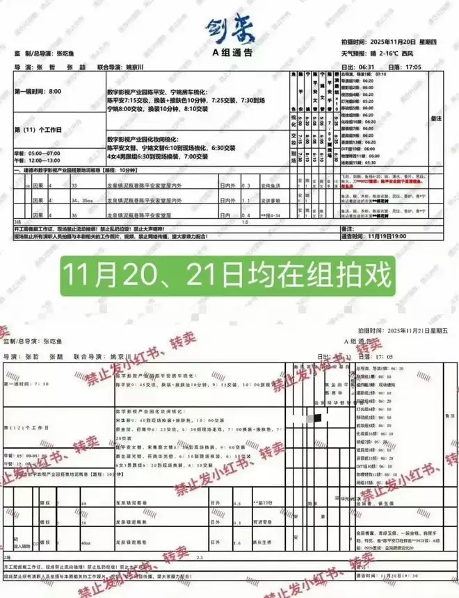 以及《剑来》剧组的通告单,显示11月20日吴磊在浙江建德拍戏,戳破了爆料时间线谎言。