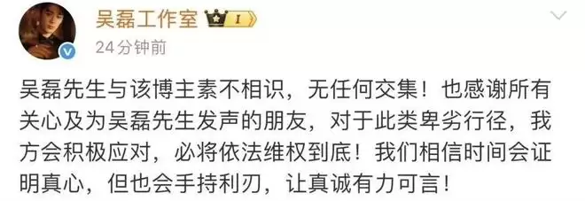 说实话,面对这场闹剧,吴磊方的回应已经很可以了,工作室在谣言出现没多久就上线,发布严正声明,明确表示这些都是毫无事实依据的谣言,已经用区块链技术完成了全平台证据固定,启动法律追责程序。