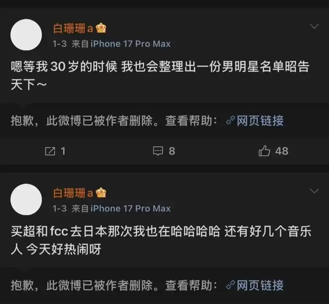 唯一能用来佐证自己“有料”的,就是以前发过一些故作神秘的动态,要么扬言“等到30岁要整理一份男明星名单昭告天下”;