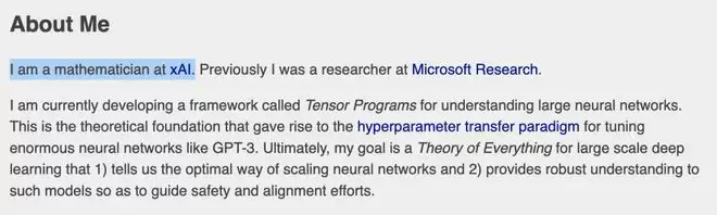 一直以来,在个人主页中,Greg Yang都自称是「xAI的数学家」。
