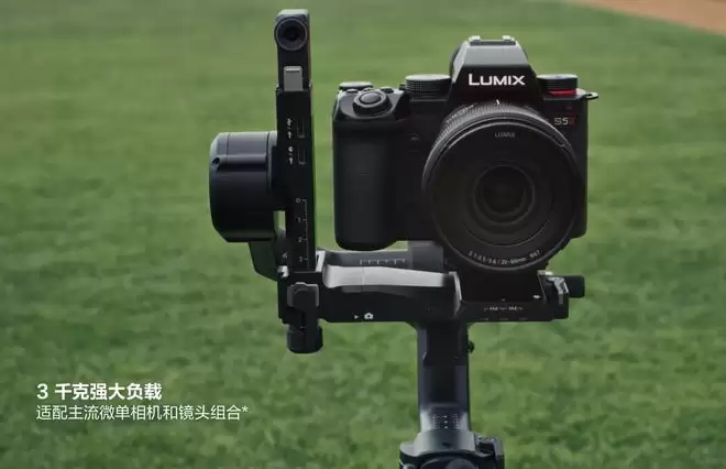 DJI RS 5本体连同手柄及快装板仅重1.46千克,并采用第三代原生横竖拍切换设计,无需额外配件即可快速切换至竖拍模式。即使机身轻便,DJI RS 5仍具备3千克的负载能力,配合大功率电机,可轻松搭载主流微单相机及镜头组合。