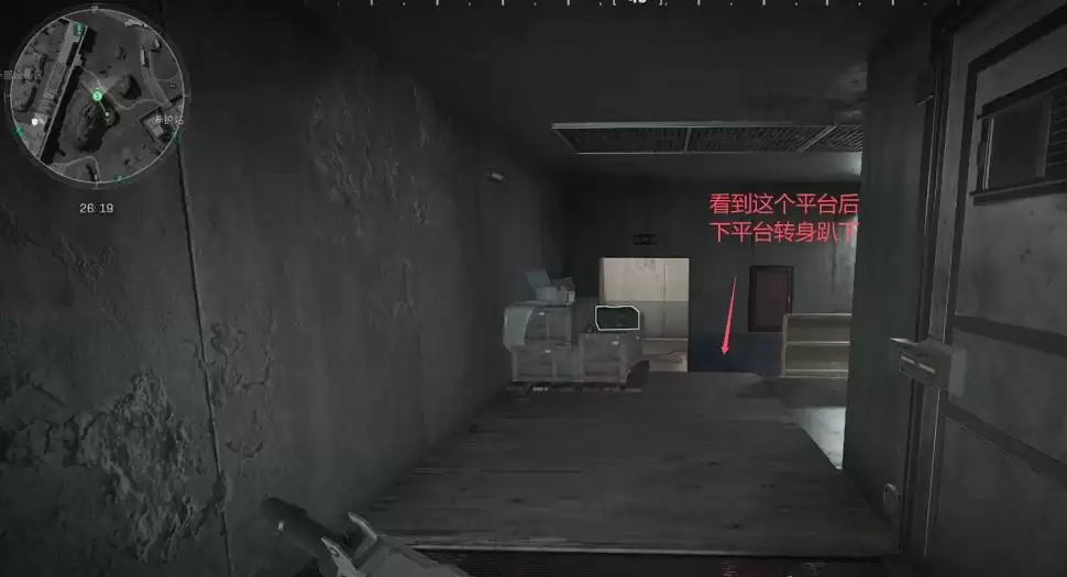 看到这个平台后,下到平台处转身趴下。