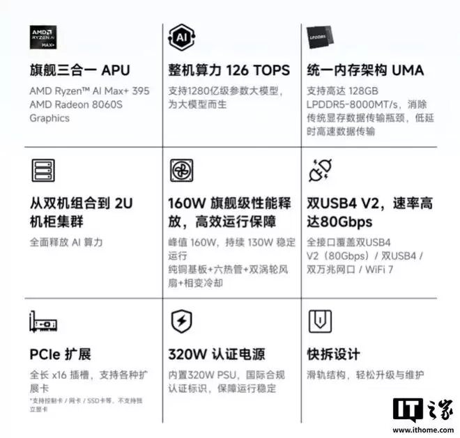 在“面向未来”,拥抱 AI 的基础上,铭凡 MS-S1 MAX 迷你 AI 工作站在传统意义的生产力上,也同样不弱,堪比 RTX 4060 桌面端独显的性能,让它在 AI 部署之外,同样能够胜任绝大多数日常工作,可以说,它就是 AI 时代的“多面手”。翻看当下的 AI 一体机市场,能真正高效应用 AI 的算力基座,锐龙 AI Max+ 395 处理器可谓当仁不让,通过 AMD UMA 统一内存架构的强力加持,彻底消除了显存数据带宽的瓶颈。在铭凡 MS-S1 MAX 迷你 AI 工作站上,满血最高 160W、稳定 130W 的处理器性能释放,更是让产品的硬实力得以展现无疑,值得推荐。