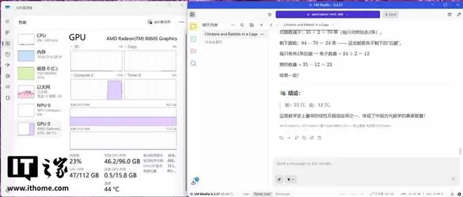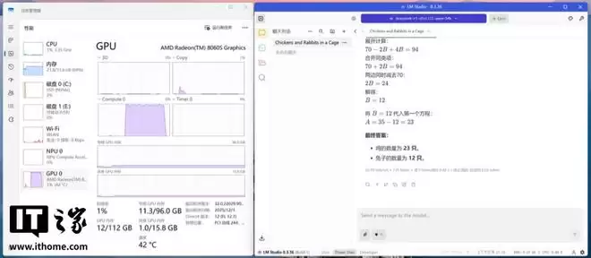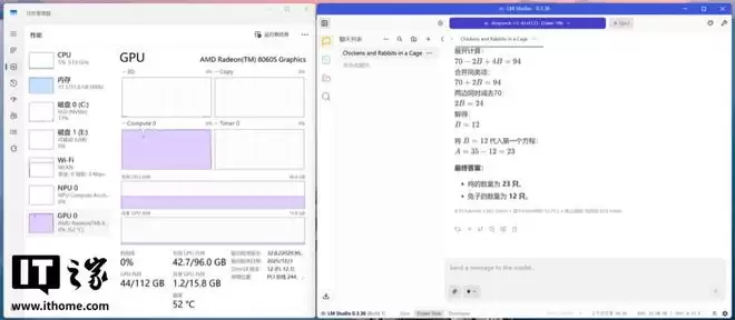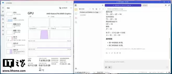 在四款模型中,IT之家使用了同样的鸡兔同笼问题对其进行测试,在 8b 模型中,其推理速度可达 41.05 token/s,GPU 只满载了短短几秒。