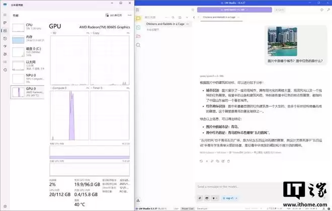 除了文字类的模型,IT之家也尝试使用 Qwen3-VL 测试其在图片理解类模型上的表现,IT之家输入了上图并询问图片中的地点是哪里。模型给出了准确的识别和答案,最终输出速度达到了 68.39token/s,速度非常快。