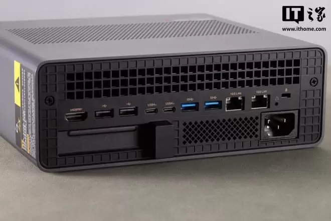 机身背部则更加“简单粗暴”的分布了大量矩形散热网孔以及丰富的拓展接口。