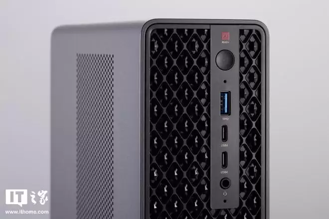 MS-S1 MAX Mini AI Workstation 采用了太空铝机身,表面经过多道工艺处理,呈现出细腻的磨砂质感,在确保机身强度的同时,也带来了出色的手感。