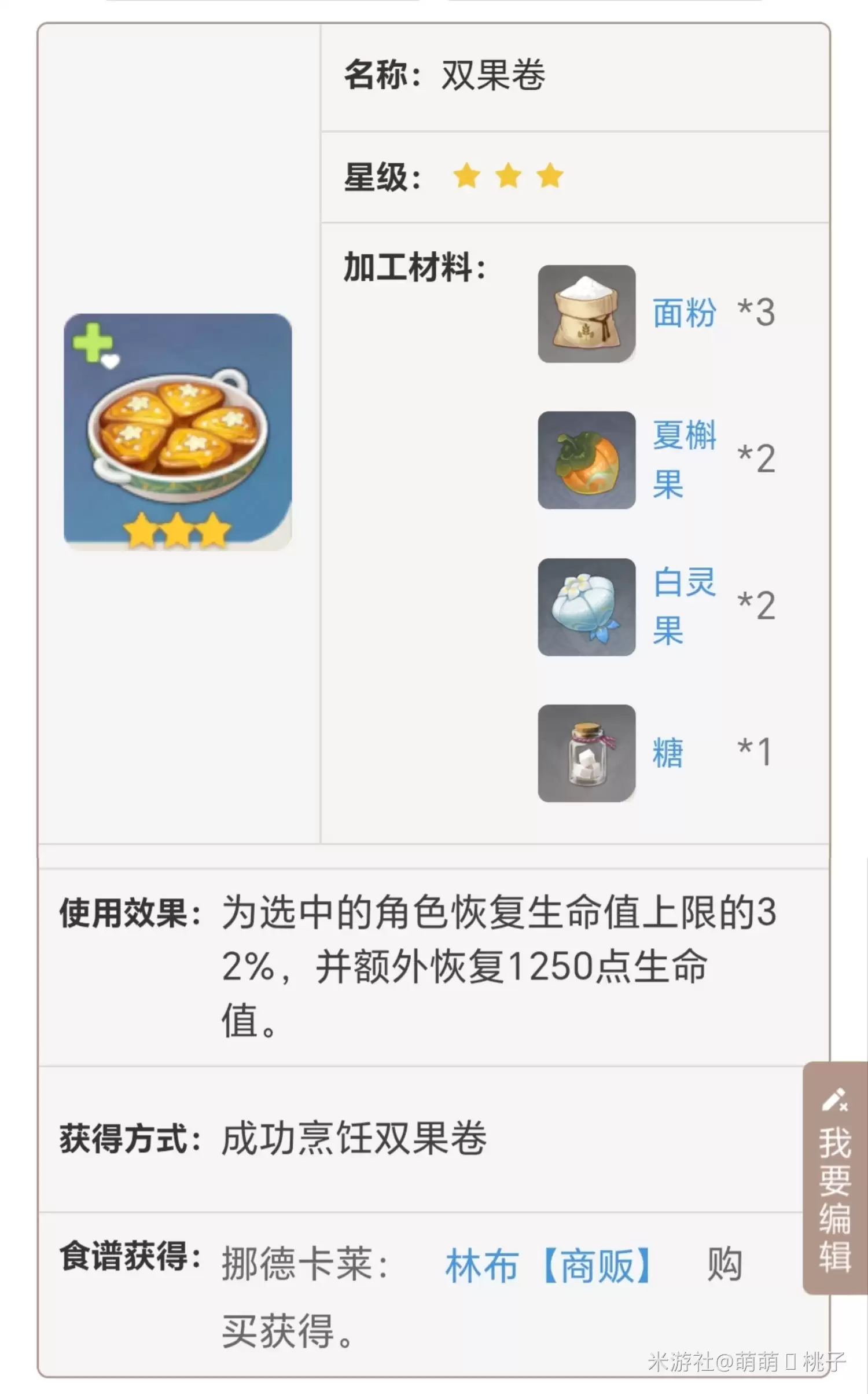 原神里的白灵果要去哪里找呢?它可是制作食谱「双果卷」的重要材料之一。「双果卷」作为一种恢复类料理,不仅材料容易收集、数量充足,性价比也非常高,使用后能为选中角色恢复生命值上限的32%,并额外回复1250点生命值。接下来,就为大家详细介绍这个食材的获取方法与采集路线。