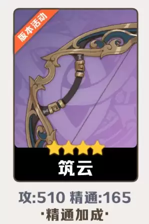 其他如活动武器“筑云”,能提供元素精通加成,并且在角色流失元素能量时进一步叠加精通收益。其效果设计也可以很好地服务于赛索斯。