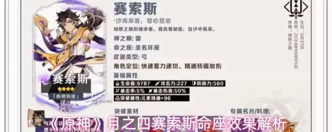 《原神》月之四赛索斯命座效果解析: