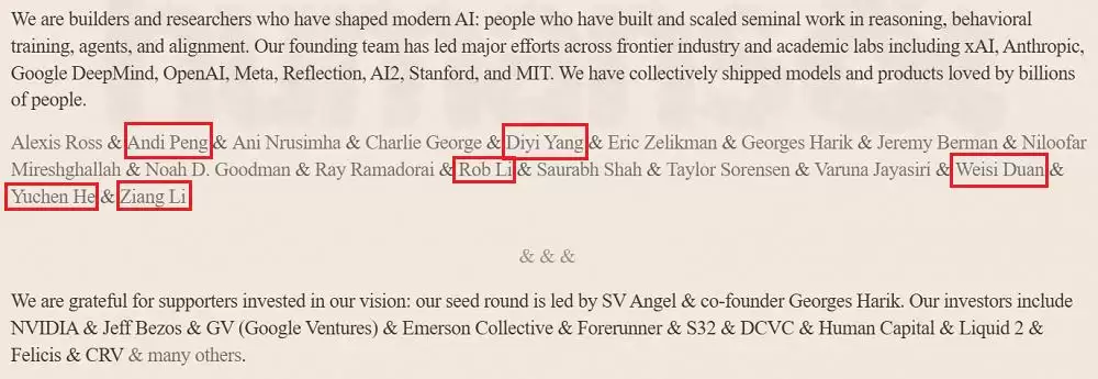 五位联合创始人中,Andi Peng曾在Anthropic担任研究员,参与了从Claude 3.5到4.5的强化学习和后训练工作。Georges Harik是谷歌第七号员工,曾参与构建谷歌最早的广告系统。