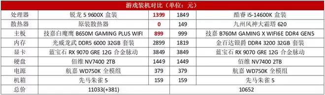 对于主流玩家来讲,游戏装机一般都会选择千元级的处理器,在很长时间内锐龙5 9600X都是同级别性价比最为突出的一款。而在近期内存价格成为影响用户硬件选择的重要因素,酷睿i5-14600KF凭借对DDR4内存的支持,似乎成为经济性更好的选择。其实选锐龙5 9600X装机成本只贵300多元,游戏性能领先15%,性价比依然领先。