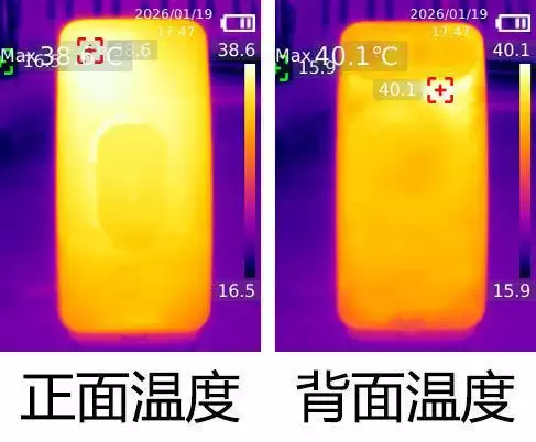 发热控制方面,机身正面最高温度38.6℃,背部最高温度40.1℃。客观而言,温度略高于常规机型,但仍处于舒适握持区间,在超薄机身的限制下,这样的发热控制已足够令人满意。功耗表现上,开启幻影稳帧功能后,平均功率为4.45W,能耗平衡表现出色。