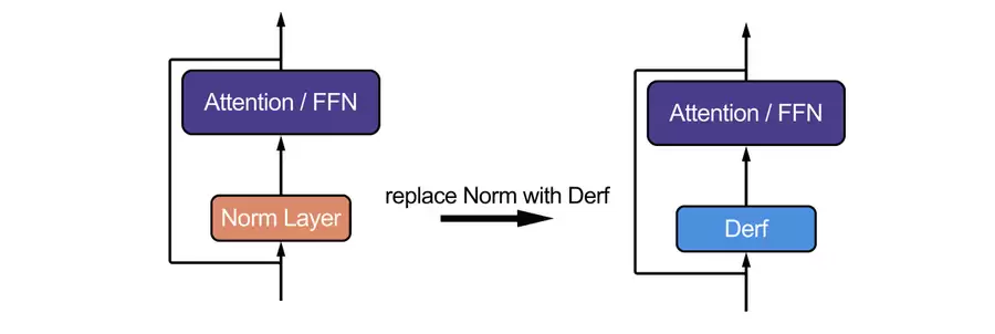 今年早些时候,刘壮、何恺明、LeCun 等人已经在题为《无需归一化的 Transformer》的论文中表明,Dynamic Tanh(DyT)函数可以取代 Transformer 中的归一化层。