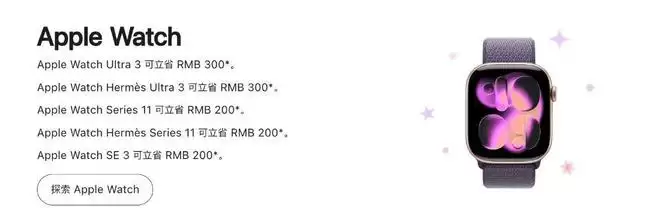 Apple Watch Ultra 3 可立省 300元、Apple Watch Hermès Ultra 3 可立省 RMB 300 元。