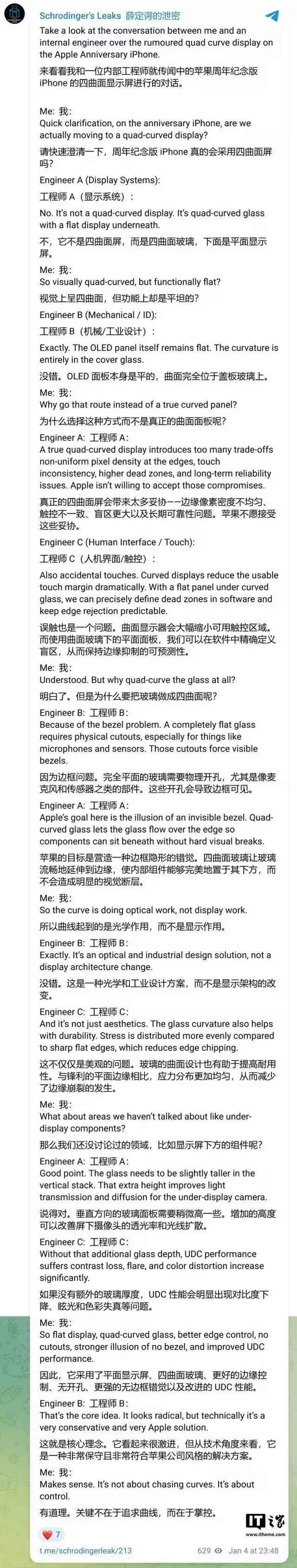 但从前段时间流出的信息来看,真实方案似乎没那么激进,@phonefuturist 分享了一份据称源自三位苹果工程师的对话记录。