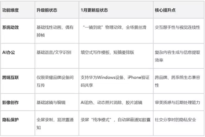 而近期最新带来了1月的版本更新,荣耀不仅在动效上补齐了最后一块拼图,更在AI协同和影像玩法上给出了不少惊喜。