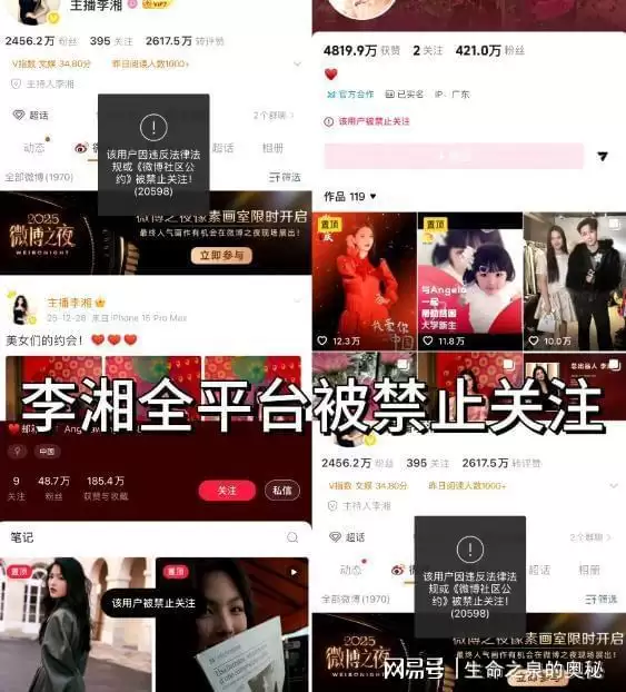 微博更是直接提示“该用户因违反法律法规或社区公约被禁止关注”,这消息一出,瞬间冲上热搜,全网都沸腾了。