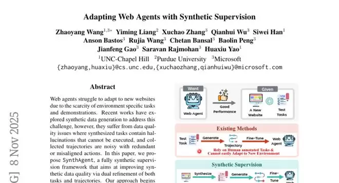 面对这一挑战,微软研究团队提出了一个名为SynthAgent的全新框架,这就像为AI助手配备了一套完整的"适应新环境"训练方案。这个方案的核心思想是通过完全合成的监督学习来帮助AI助手适应新 ,而且不需要任何人工标注的数据。