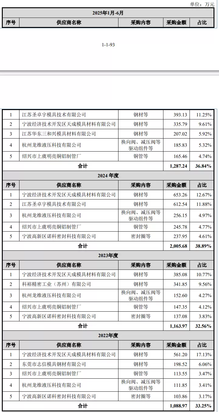报告期内,公司的前五名材料供应商较为稳定,不存在向单个供应商的采购比例超过50%或严重依赖少数供应商的情形。截至本次招股说明书签署日,公司董事、高级管理人员、主要关联方或持有本公司5%以上股份的股东在上述前五名供应商中未占有权益。