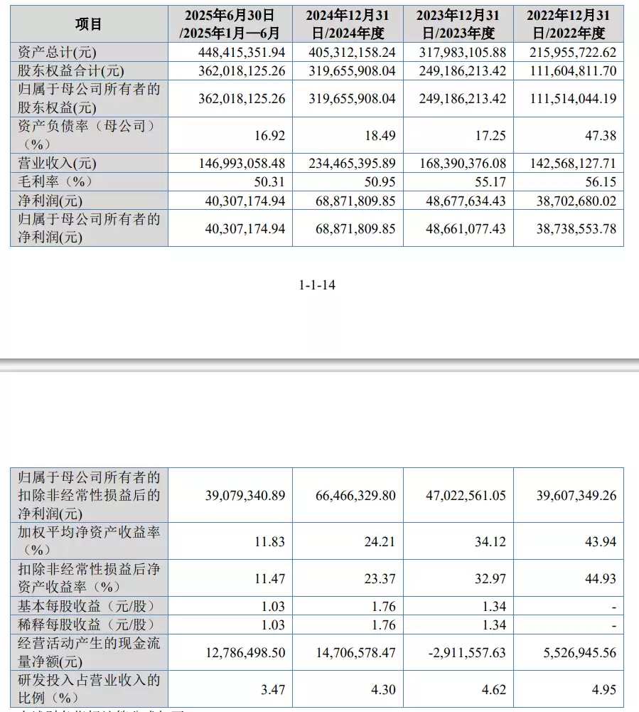 报告期内,恒道科技的营业收入分别为1.43亿元、1.68亿元、2.34亿元和1.47亿元;净利润分别为3870.27万元、4867.76万元、6887.18万元和4030.72万元。